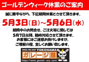 ゴールデンウィーク期間の営業に関するご案内となります。